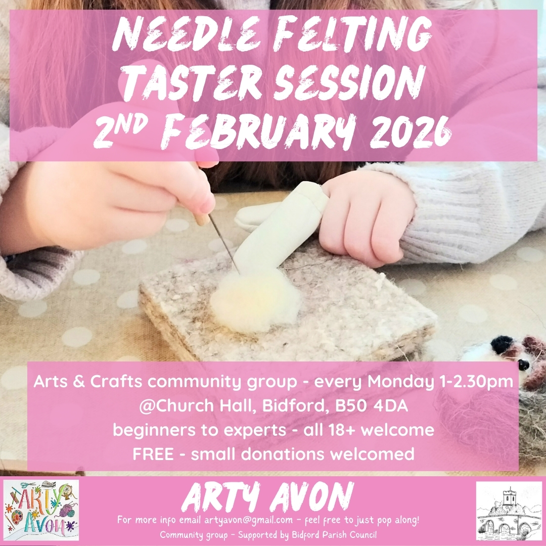 Join Arty Avon for a needle felting taster session on Monday 2nd February, 1-2.30pm at Church Hall, Bidford. Beginners to experts, all 18+...