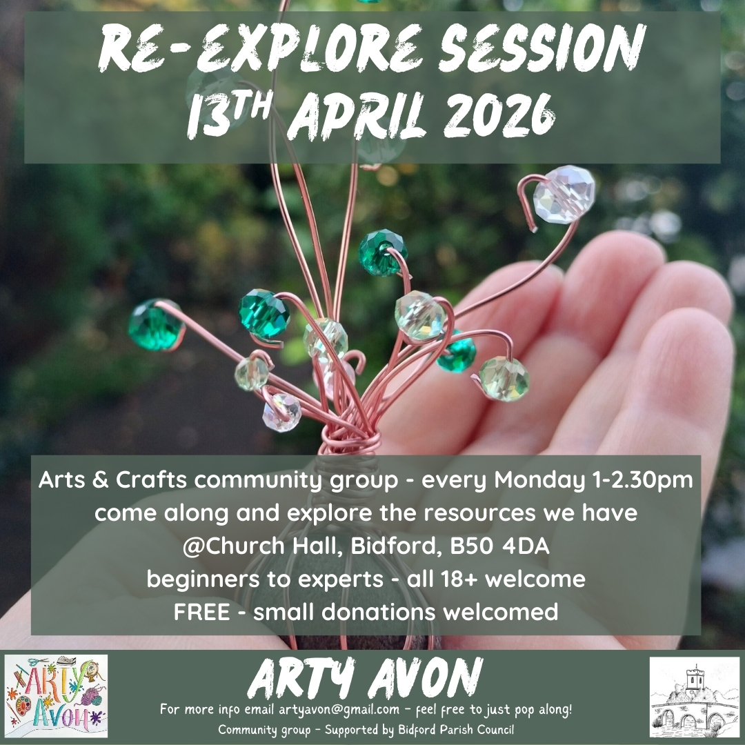 Join Arty Avon for a paper & cards session on Monday 27th April, 1-2.30pm at Church Hall, Bidford. Beginners to experts, all 18+ welcome. This is a free session (small donations welcomed). For more info email artyavon@gmail.com