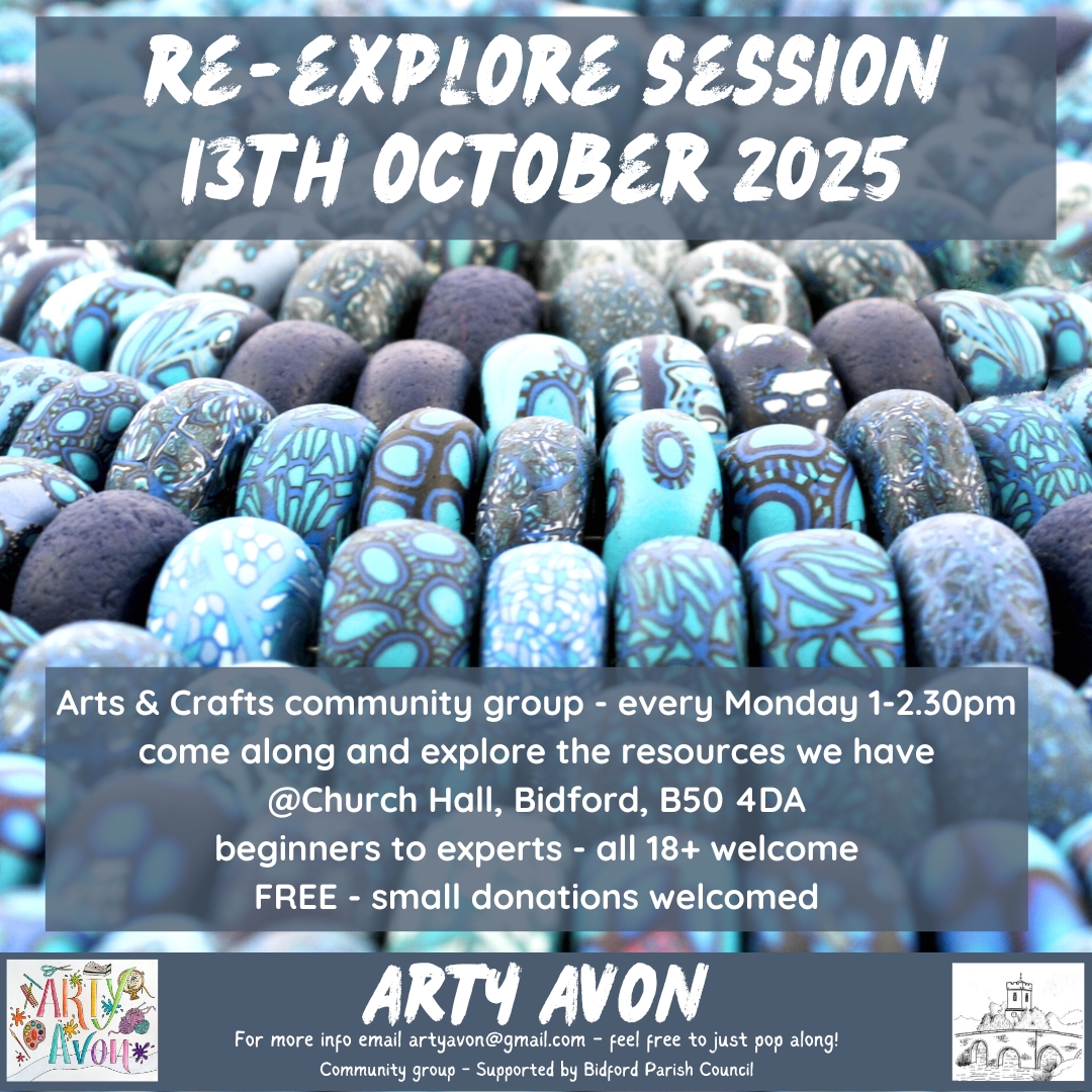 Join Arty Avon for a re-explore session on Monday 13th October, 1-2.30pm at Church Hall, Bidford. Beginners to experts, all 18+ welcome. This is...
